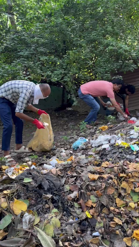 Without delay, we began cleaning the premises, removing years of accumulated waste with our own hands. Wearing gloves and driven by devotion, our volunteers cleared the surroundings of litter and dried foliage, allowing the natural sanctity of the place to breathe again.